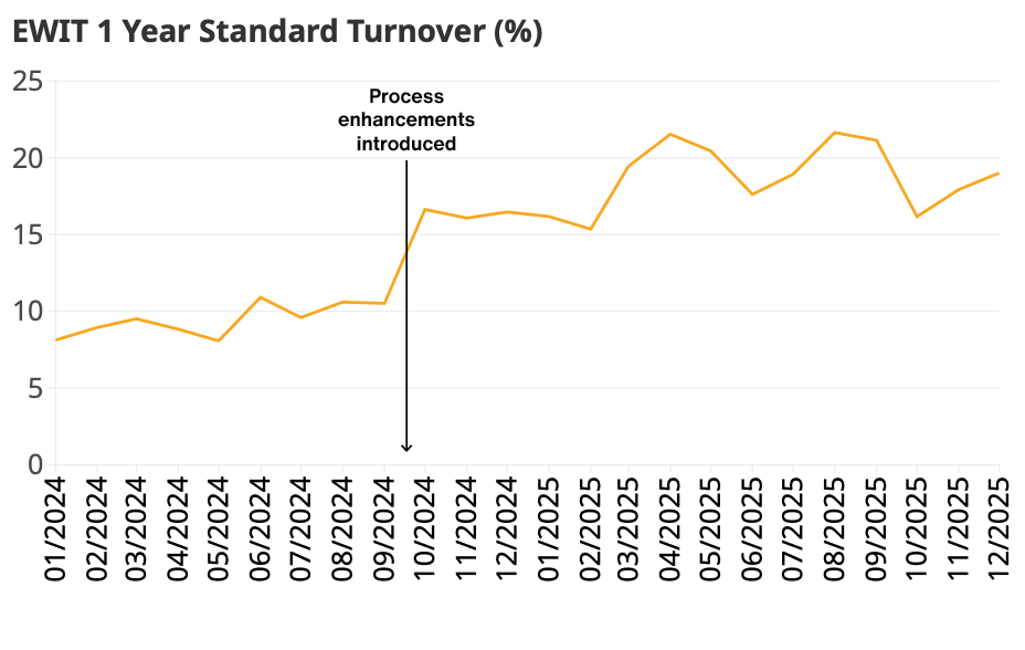 EWIT 12 month standard turnover as at 30 November 2025